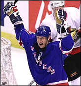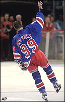 On April 18th 1999, Wayne Gretzky plays his final game at MSG against the Pittsburgh Penguins. After 20 unforgettable seasons the Great One will hang up his skates for good as a player in the NHL. Holder of 61 league records, his number 99 was forever retired by the league as a thank you for all his contribution to the game! Wayne, the consumate playmaker received an assist in the Rangers only goal...his last! | |||||||||||||||||||||||